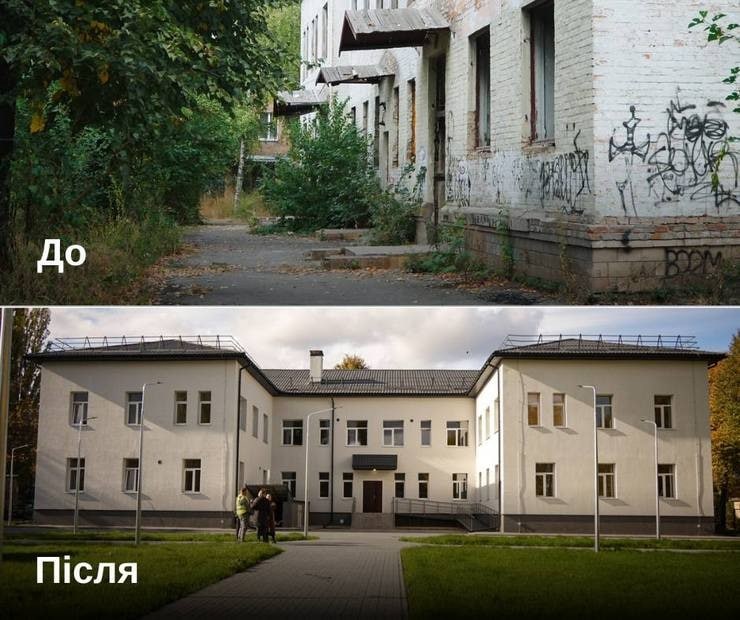 “Після” — той самий об’єкт зараз. Ми вклали колосальні зусилля: капітальний ремонт двох будівель, нові комунікації, безбар’єрність, укриття, ліфт — усе для комфортного проживання.